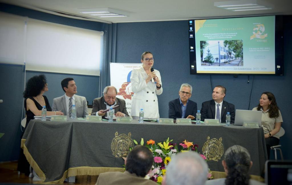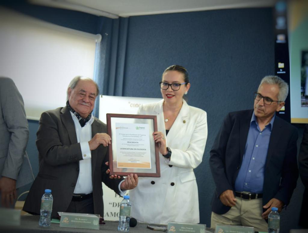 Acompañada de Roberto Hernández Oramas, presidente del organismo acreditador, la rectora resaltó la importancia de esta acción, al señalar que permite seguir avanzando en la calidad educativa, comentó que con ello se finaliza un proceso que contó con la participación y el esfuerzo de quienes integran la Facultad de Filosofía, y que implicó un arduo trabajo.